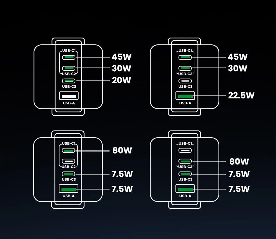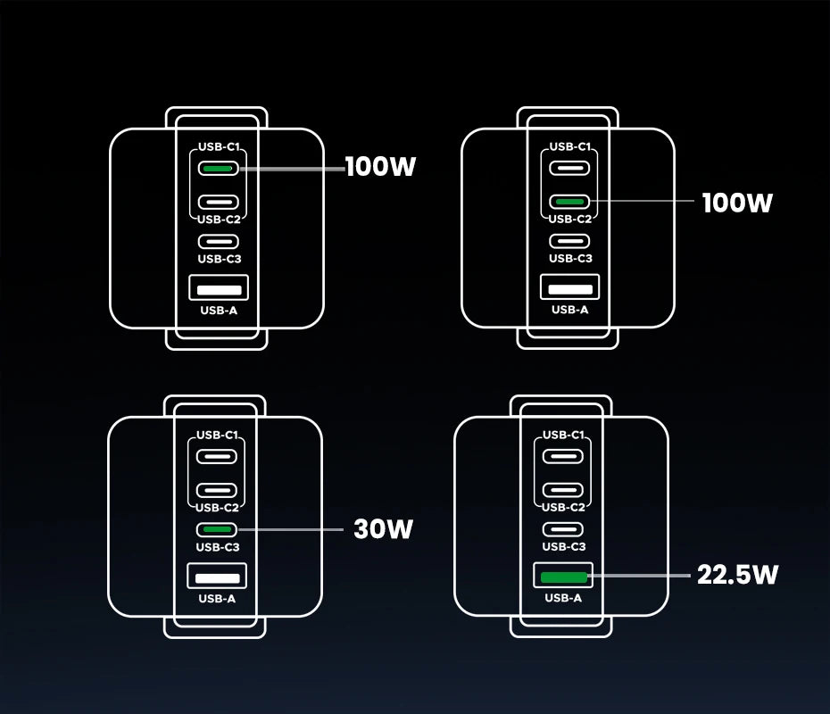 Output Interface: USB,Type C,1 A Port,3 C Ports