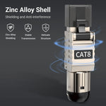 【Compatibility】Supports 22 AWG to 24 AWG Shielded Cat8 wire with an outside diameter between 7.0 and 8.5mm; Backwards compatible as Cat 6A, or Cat 7 connector.