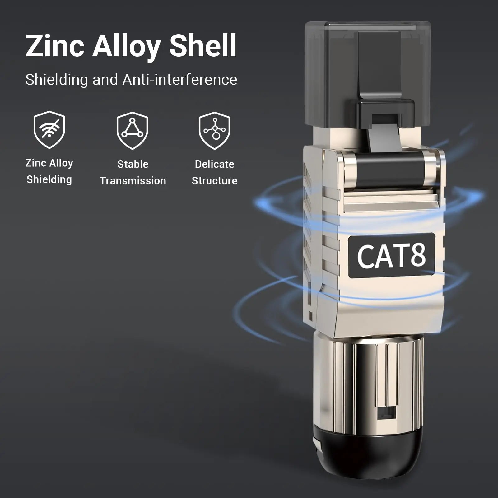 【Full-metal Structure】Superior construction combines a one piece metal housing with an integrated silencing cylinder to suppress EMI, NEXT, and AXT electromagnetic noise and crosstalk.