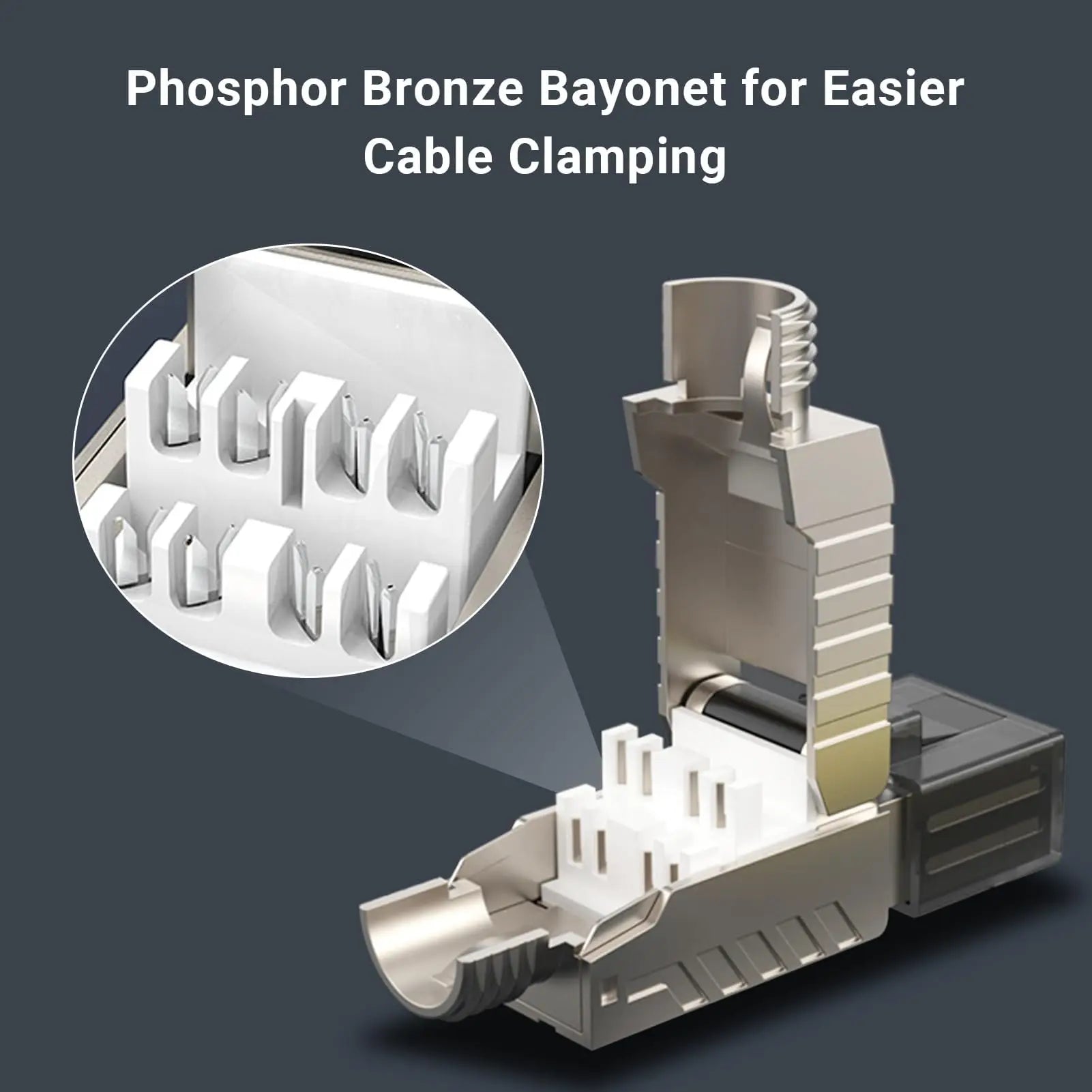 【Easy to Use】Impact tool free RJ45 connector with an open hinged design simplifies placement and termination of bulky Shielded cable;It can also be reused to reduce waste.
