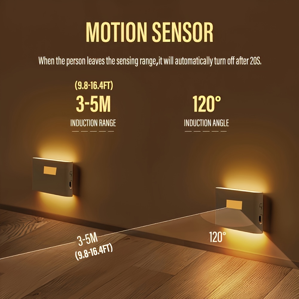 4pcs USB Rechargeable LED Motion Sensor Night Lights – Smart Wall Lights with Adjustable Brightness, Infrared Sensor for Bedroom, Hallway, Cabinet & Kitchen, Motion Sensor Light Indoor