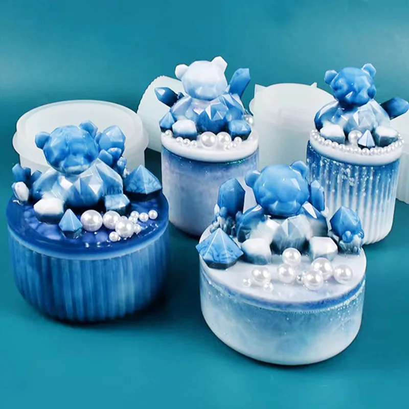 DIY Crystal Epoxy Resin Mold High Mirror Round Storage Bottle Stripe Jewelry Box Container Silicone Molds For Aromatherapy
