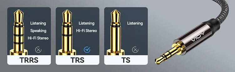 ⭐[Important note]: The VIOY 3.5mm auxiliary cable extension is not suitable for inline volume control on headphones. If you use TRRS headphones (4-pole) with this extension cable, the audio will work properly, but the microphone will not work. (TRS only)