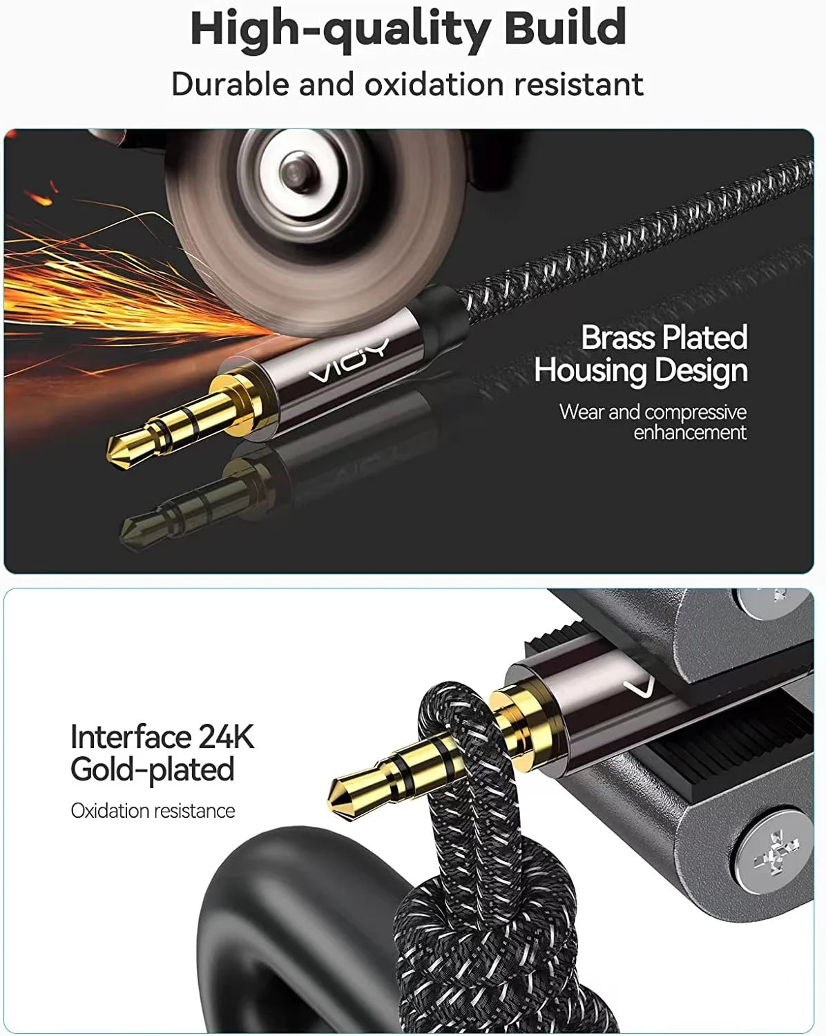 Precise size measurement for gold-plated plug and copper shell means VIOY aux extension cable is fully compliant with the 3.5mm interface standard and it can perfectly compatible with all devices with 3.5mm port.