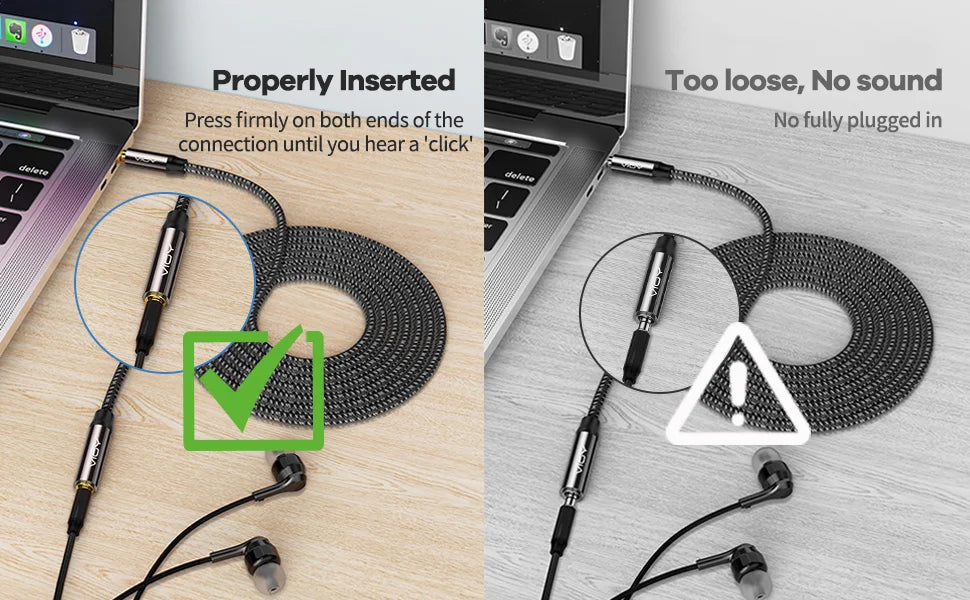 ⭐Combined with a 24k gold-plated connector and solid copper casing, the VIOY headphone extender can withstand better conductivity and oxidation resistance, providing you with stable audio transmission and excellent sound quality.