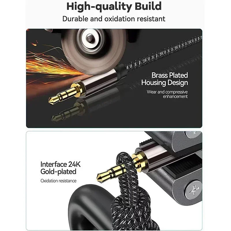 Braided aux cable makes it easier to route, place, and install the cable under any circumstances. Which greatly improves its durability and flexibility. High elasticity and wear resistance make this cable get a long-life use.
