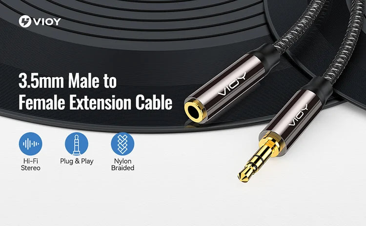 VIOY Professional Series--VIOY 3.5mm Male to Female Audiophile Stereo Audio Cable--Superior Stereo Sound Experience, Ultra-durability and Extend Your Joy
