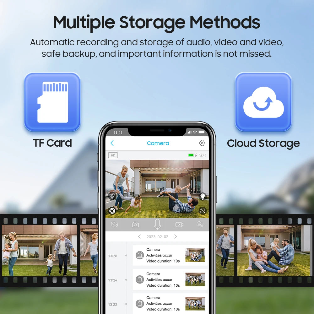*Free 30-day Cloud Storage and max 128GB TF card record,date security is more stable.