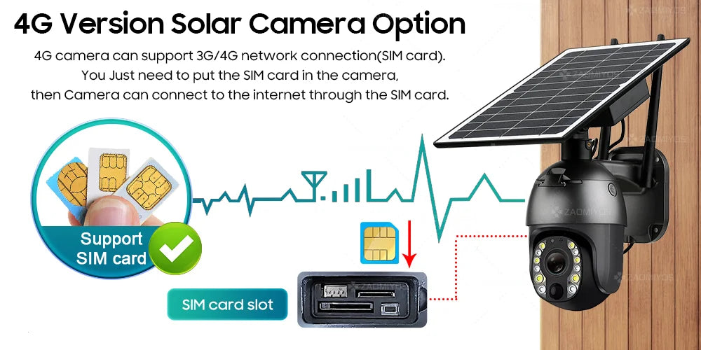 *If you choose 4G version solar camera,4G camera can only support 3G/4G network connection(SIM card).