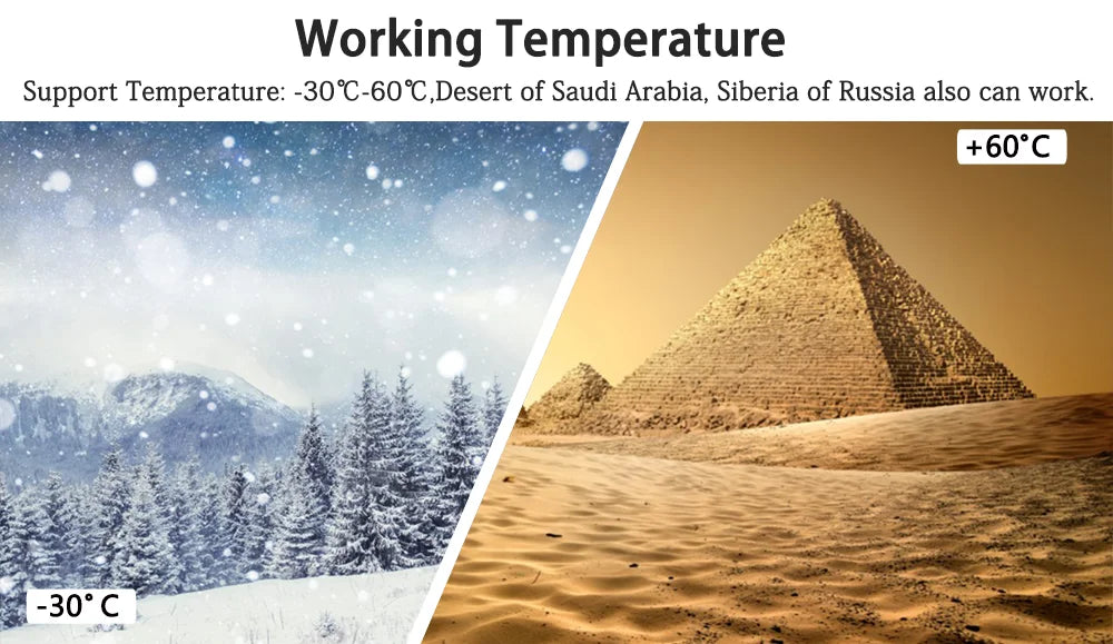 *Temperature: -30-60℃,Desert of Saudi Arabia, Siberia of Russia also can work.
