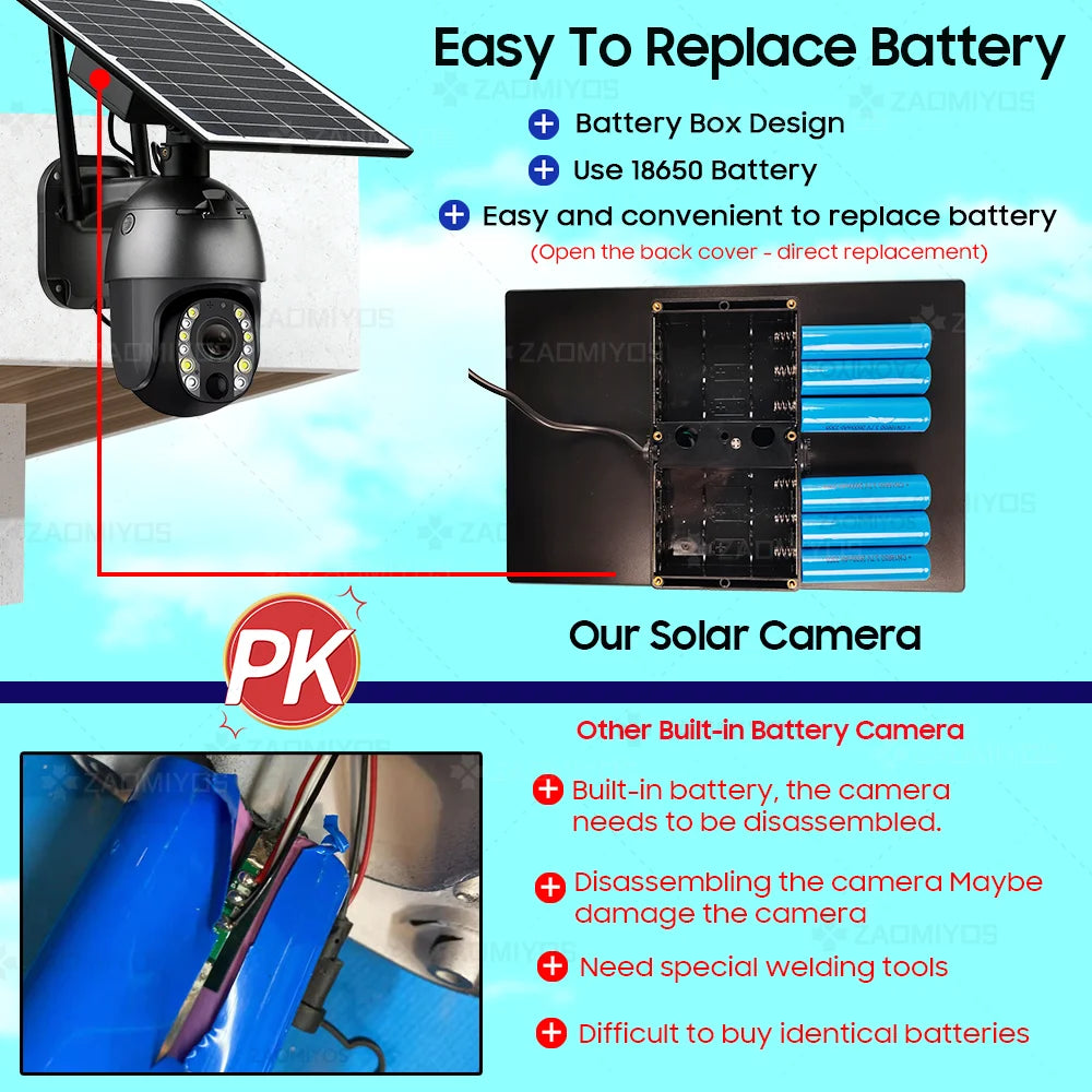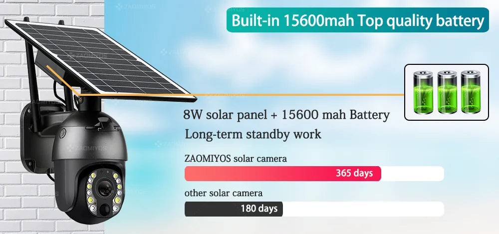 8W solar panel + 15600 mah Battery,camera support Long-term standby work (MAX 365 days)