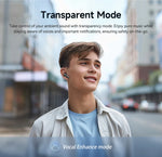 Transparent Mode: Take control of your ambient sound with transparency mode. Enjoy pure music while staying aware of voices and important notifications, ensuring safety on-the-go.