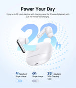 Enjoy up to 28 hours playtime with charging case. Get 2 hours of playback with just 10-minute fast charging.