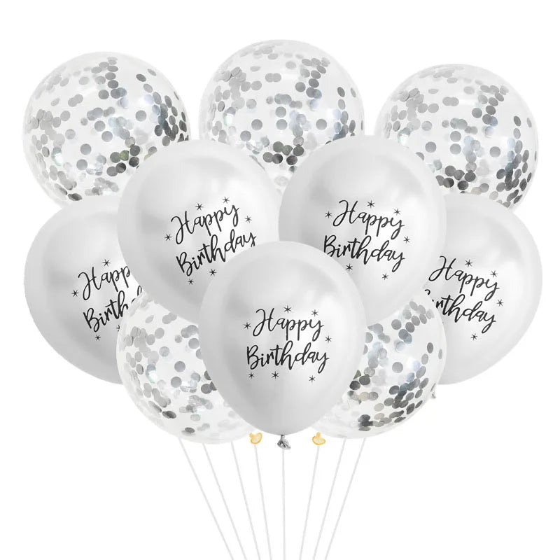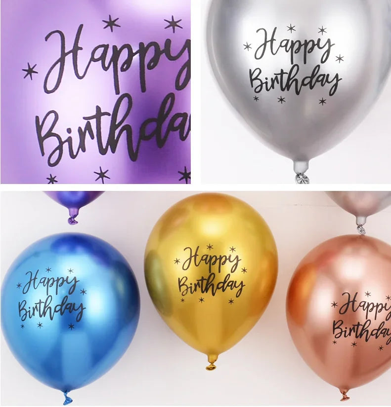10/20pcs 12inch Happy Birthday Printed Pattern Metallic Ballons Helium Latex Balloon Chrome Metal Globos Birthday Party Decorations