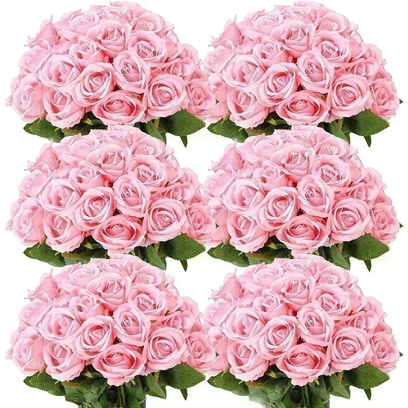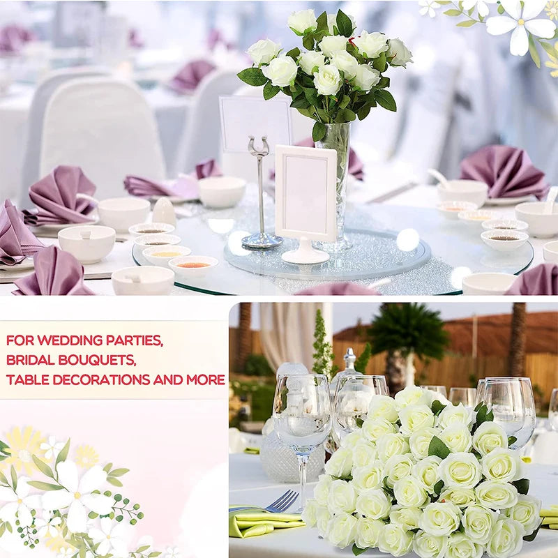 50 Pcs Artificial Rose Flower Silk Roses Bouquet Real Looking Fake Roses for Home Wedding Centerpieces Party Decorations