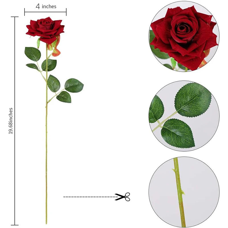 Reliable Material: the appearance of artificial roses for decoration, leaves and stems is made of plastic material, and inside is made of metal wire; The diameter of blooming rose head is 2.76 inches/ 7 cm, and the total height is about 20 inches/ 51 cm.