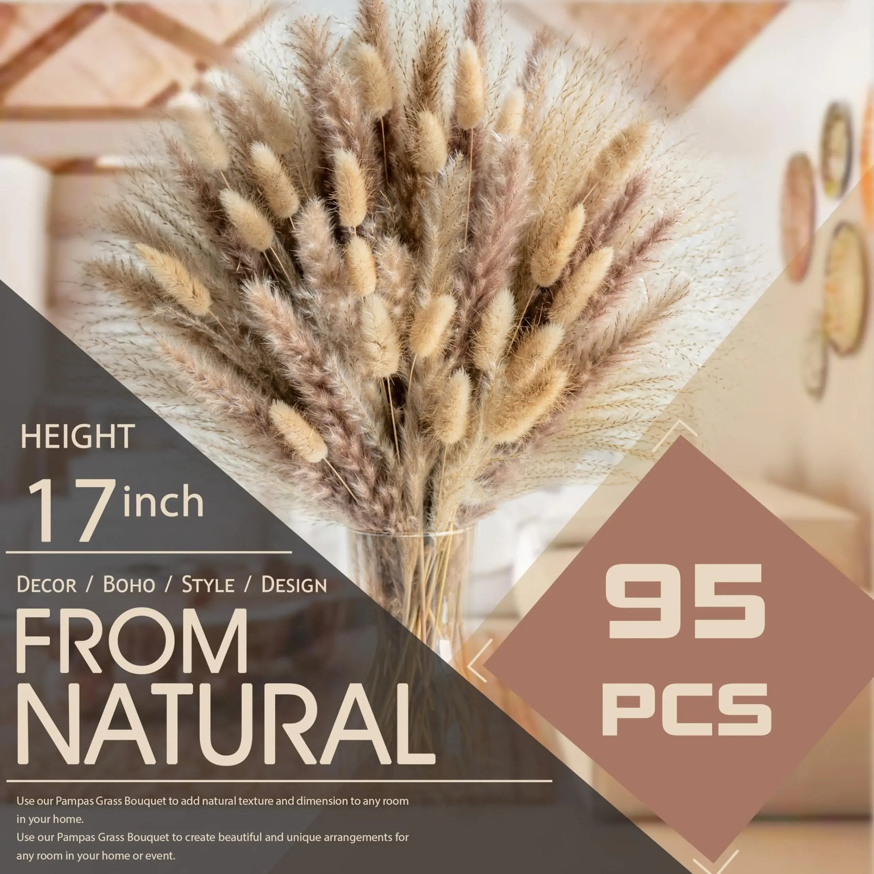 Create a Bohemian Ambiance with 95pcs Natural Dried Pampas Grass - Great for Weddings and Home Decor