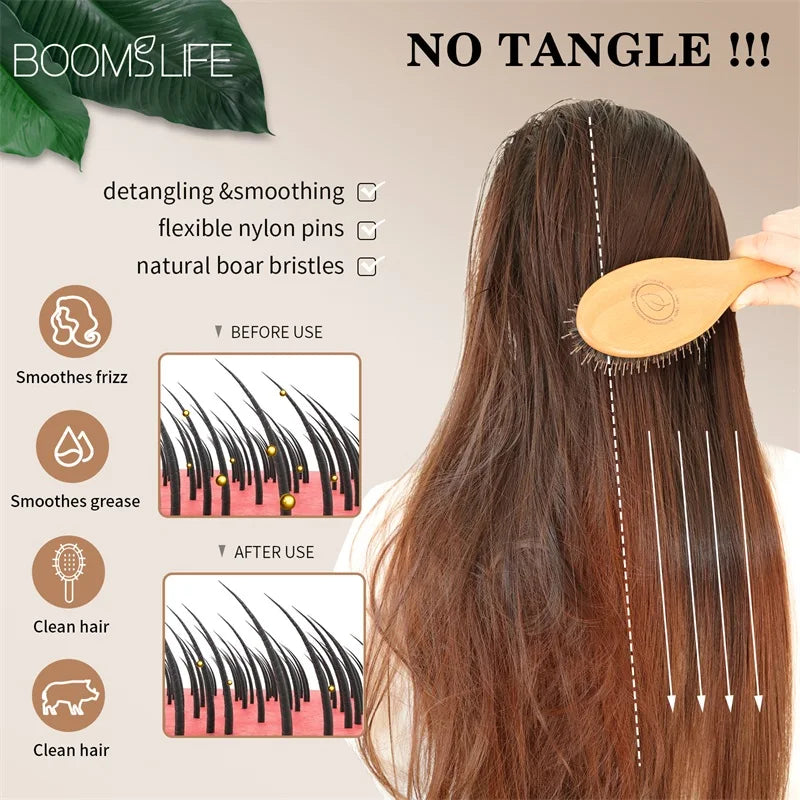 Boar Bristle Hair Brush - Anti-Static Scalp Massage Comb