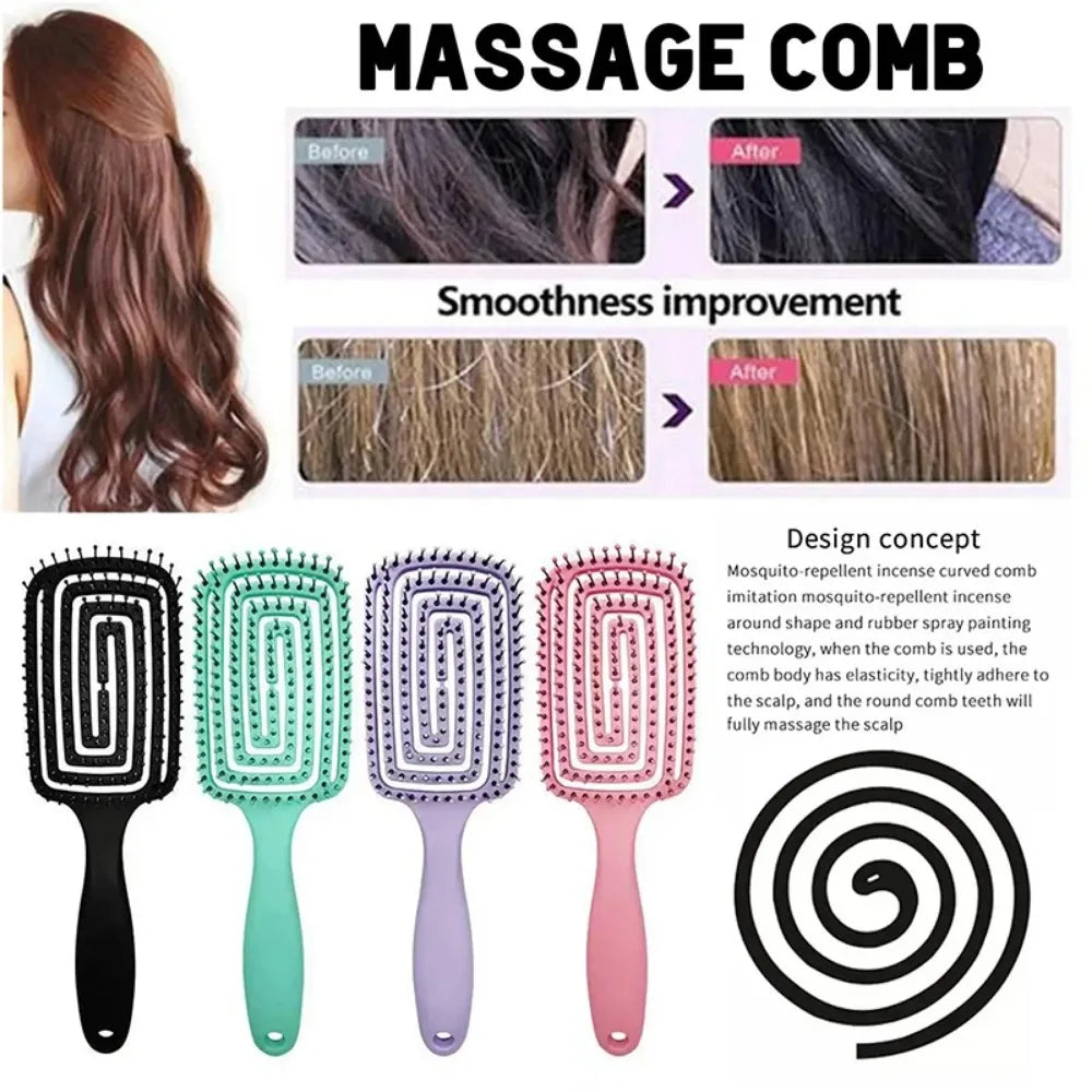 Elastic Scalp Massage Comb - Hollow Out Detangling Hair Brush