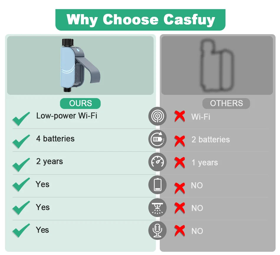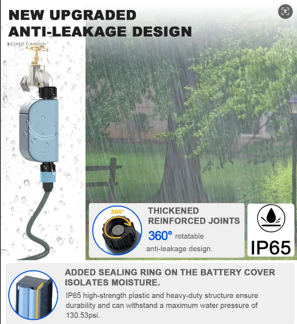 Made to save every drop, our timer lasts up to 630 days (based on 5 cycles/day in lab conditions) — enjoy watering that just works. Rain or shine, home or away-your garden stays perfectly watered , no constant battery swaps needed.