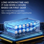 7. Easy to use operation: Adopting three speed regulation with indicator light display. The user-friendly design of portable turbo fans ensures easy functionality. In addition, the charging board also has safe and reliable charging protection and overheating protection functions. The internal brushless motor can achieve high speeds of up to 130000 RPM (revolutions per minute).