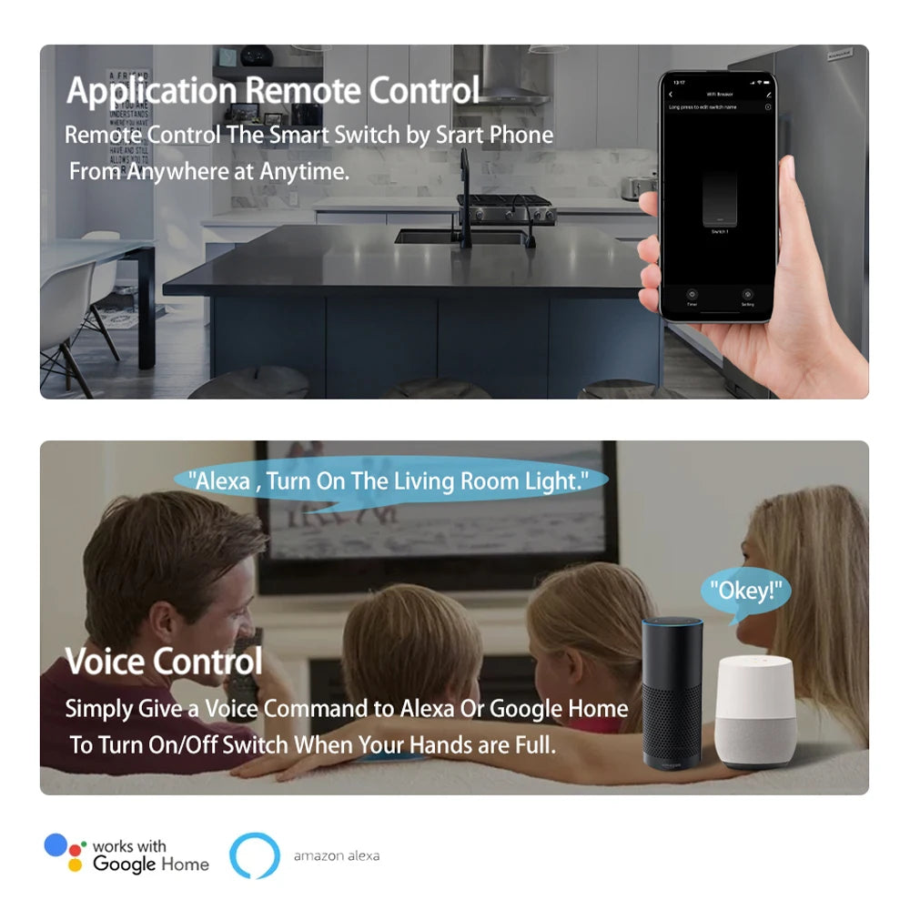 2.Wirelessly control wirelessly control your lights or devices by voice or automation using your smart phone and Alexa or Google assistants.