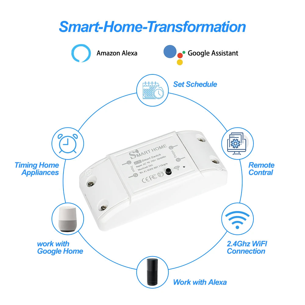4.Uses popular"Tuya/Smart Life/eWeLink" App,android / ios Allows for full control of your lights or compatible appliances. multiple program options allow you to plan the exact time to turn lights / fans / etc. On/Off automatically.