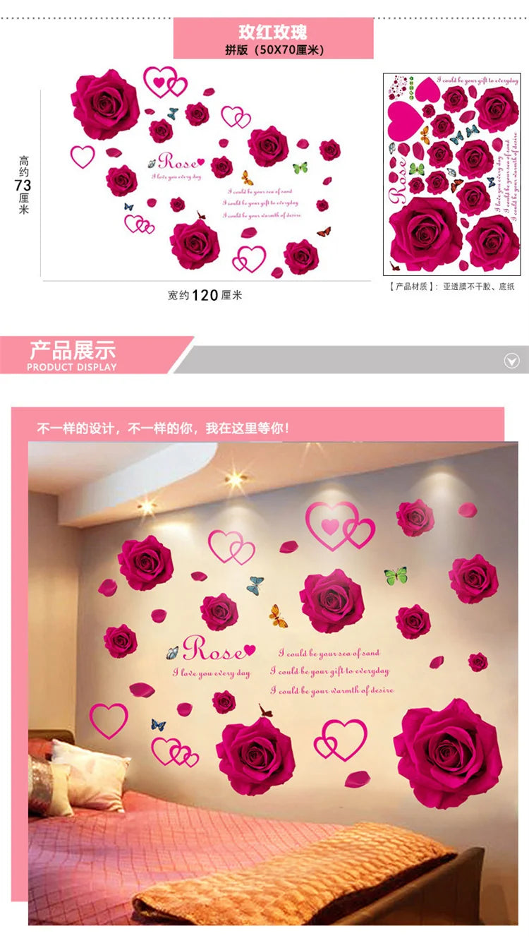 Creative Large Flower Wall Decals Romantic Floral Wall Sticker Murals Butterfly Art Decor for Girls Teens Bedroom Office Living Room Home Wall Decoration