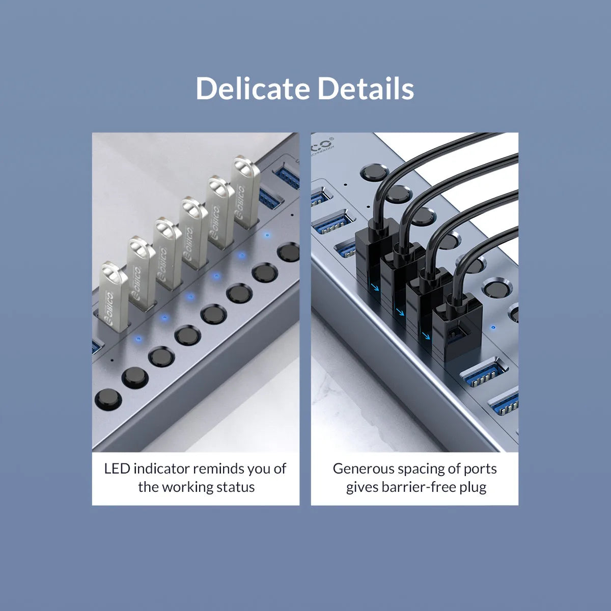 ORICO Powered USB Hub Splitter Socket - Multi USB 3.0 Port Slot