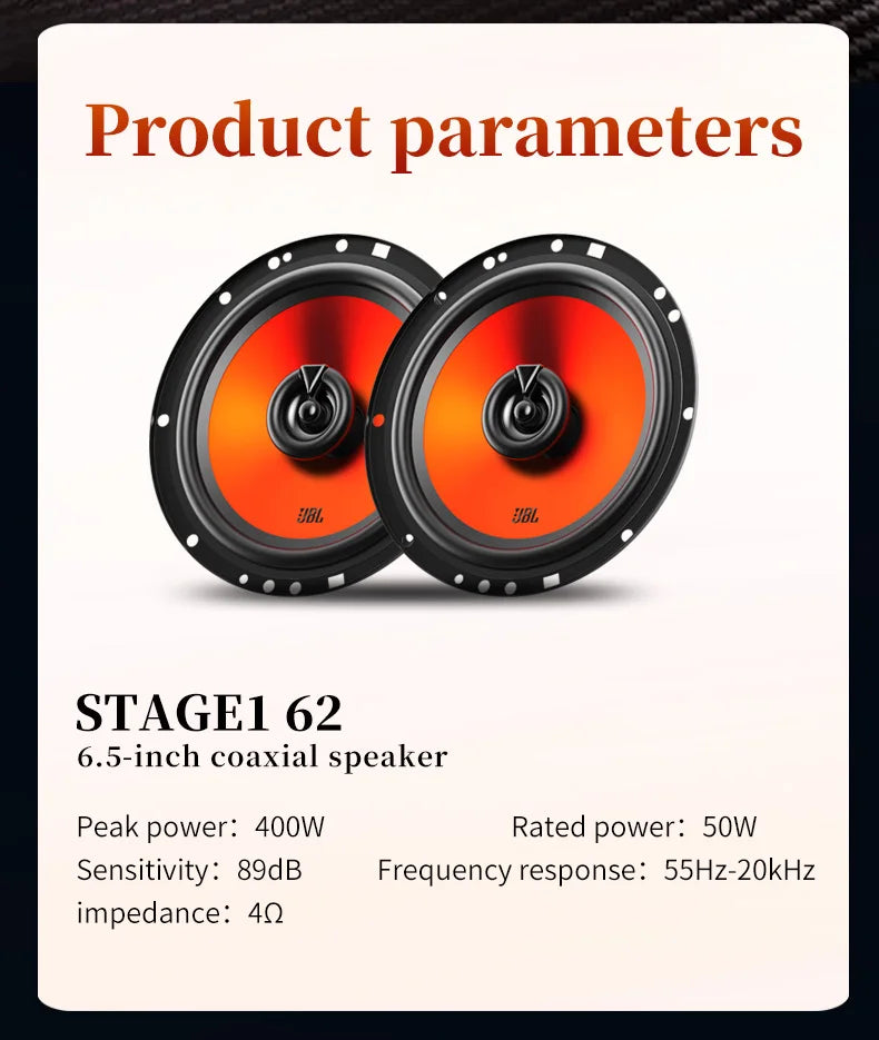 JBL STAGE1 62F is the latest coaxial speaker for JBL Auto Audio in 2025. Compared with the old STAGE1, STAGE2 and STAGE3 series coaxial speakers, this model is mainly improved and upgraded in the material and power of the speaker basin. The speaker sound basin of the new STAGE1 62F uses an improved polypropylene sound basin, which is better than the old injection molded polypropylene sound basin, and the clarity and low-frequency intensity of the new vocal instrument music are better. At the same time, the rating of the STAGE1 62F The power is 50W and the peak power is 400W. The power is significantly improved when the price is similar. Another advantage is the JBL's cone frame design, which is carefully designed to easily adapt to the speaker holes of most models without the need for complex modifications to the vehicle.