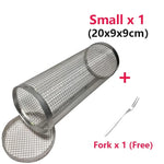 New Rolling Grilling BBQ Basket Stainless Steel Leakproof Mesh Barbecue Rack Outdoor Picnic Camping Simple Cylindrical BBQ Grill
