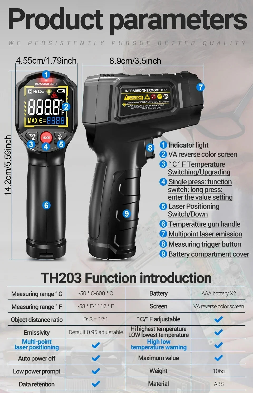 This series of infrared thermometers is designed to measure the surface temperature of opaque objects.The optical components of the thermometer can sense the reflected and transmitted energy emitted by the object and focus the
