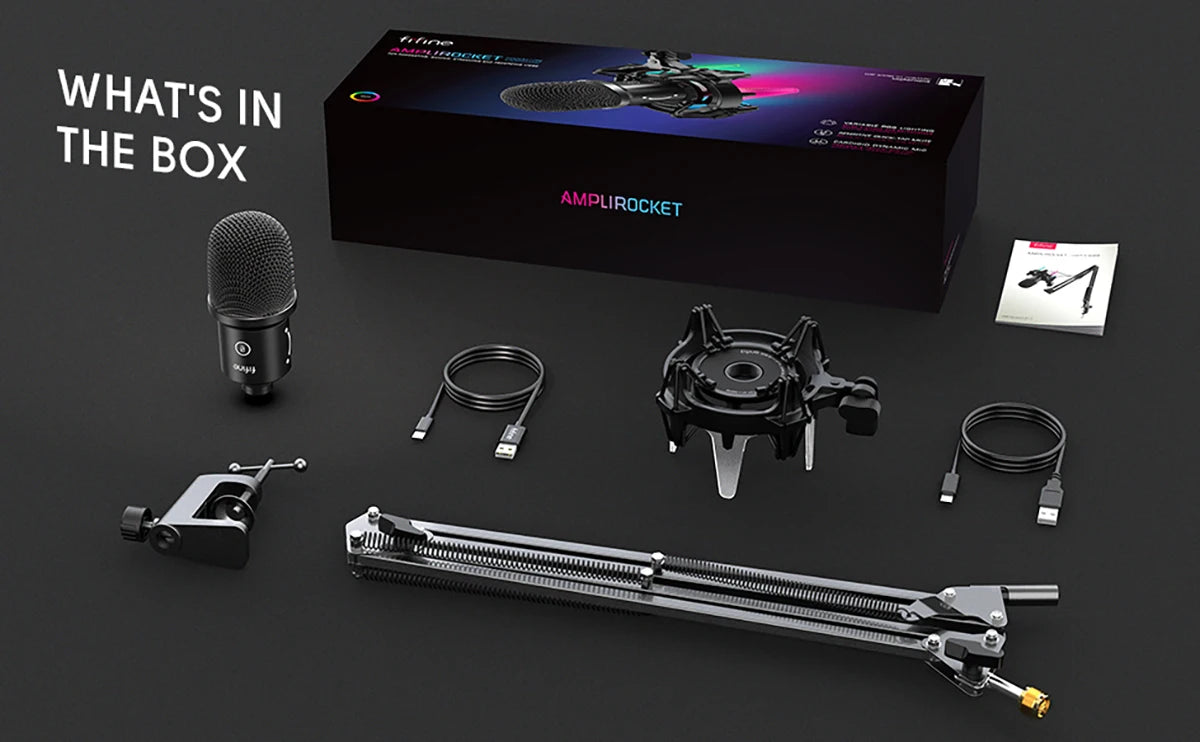 FIFINE USB Dynamic Microphone Kit with Boom Arm