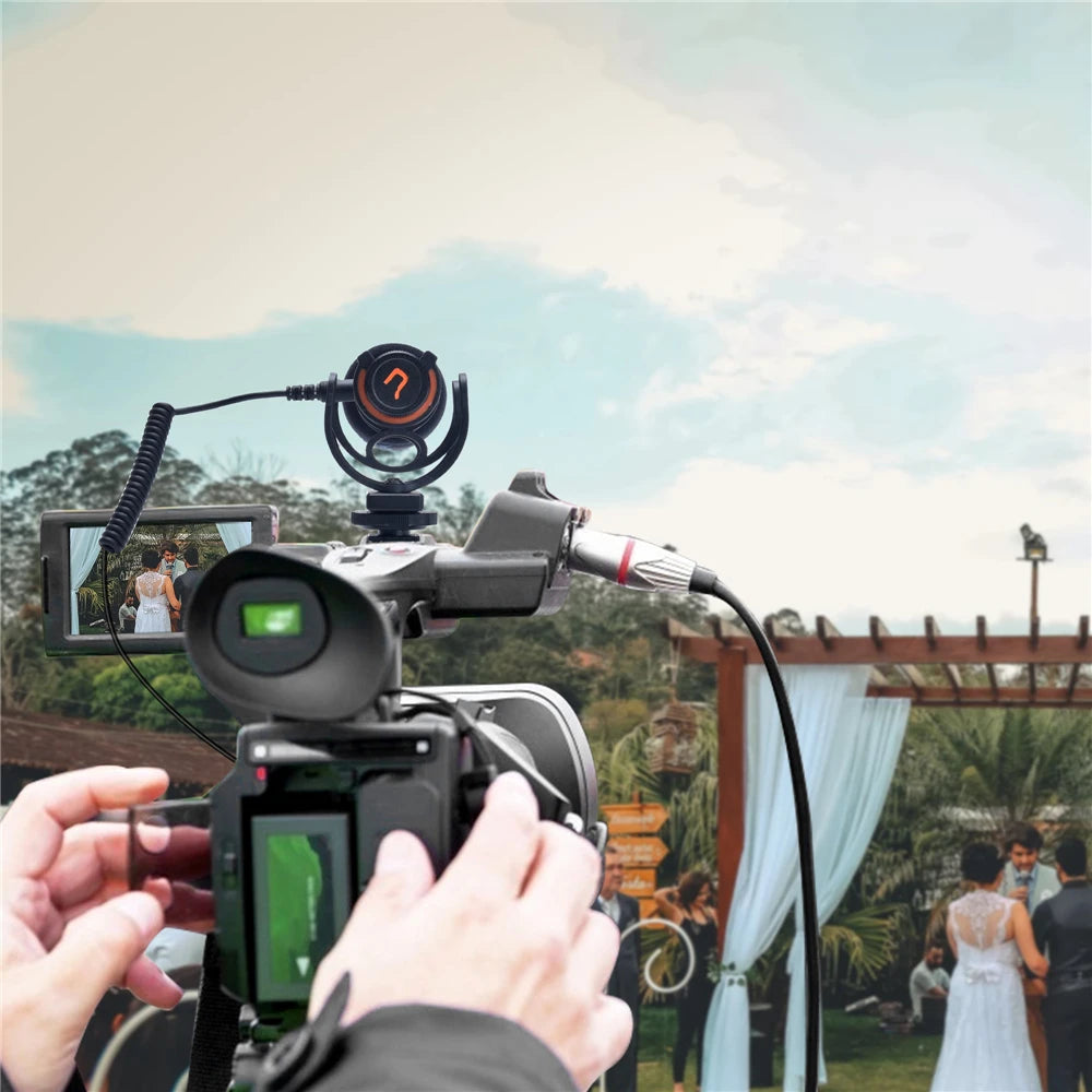 You can use a 3.5mm to XLR cable to connect to the XLR device. Note that the camera or recorder at one end of the XLR cable needs to turn off the phantom power supply to avoid burning the audio cable or microphone.