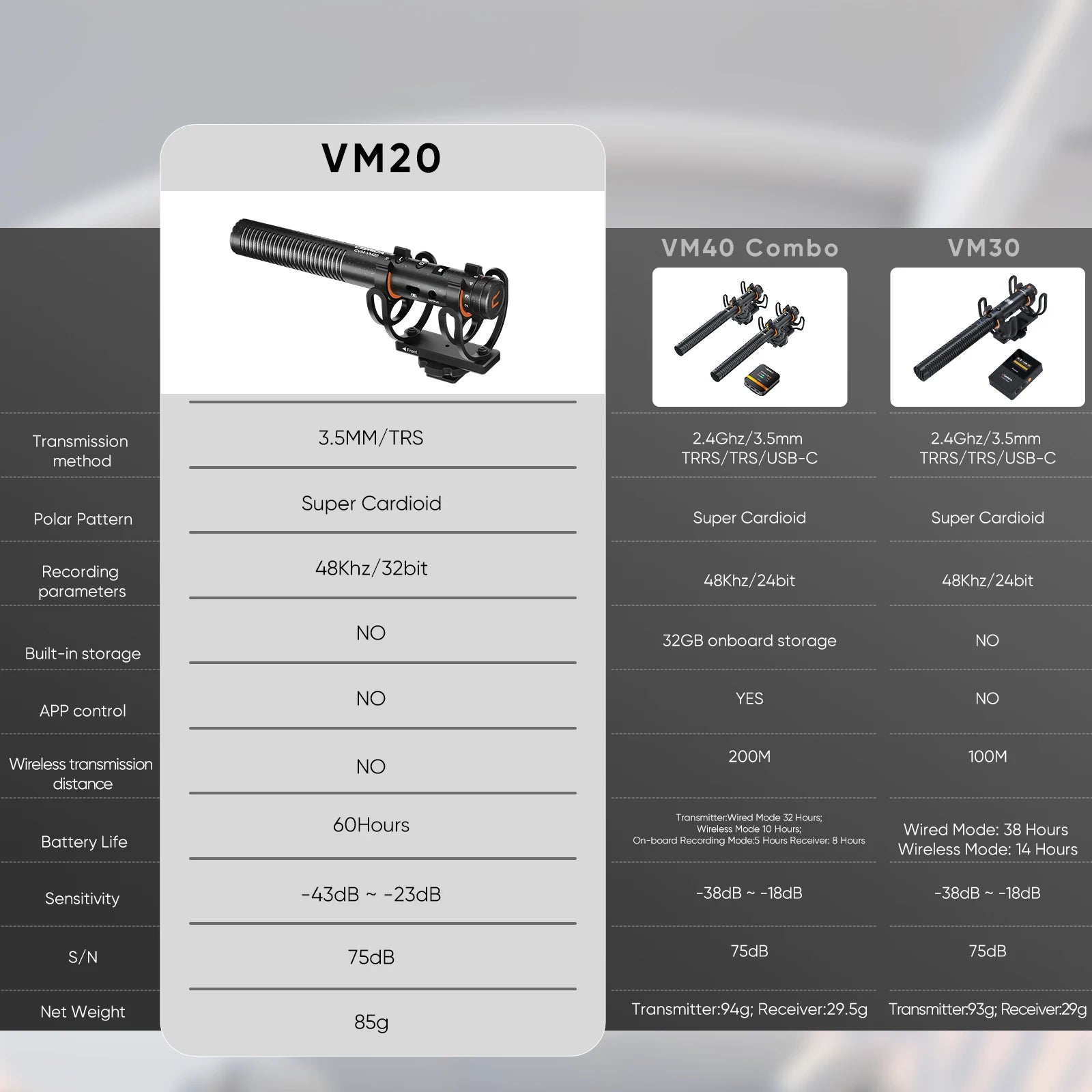 Due to the use of AC power, we recommend that the VM20 be powered by a DC power supply, such as a power bank or a V-port battery with a USB output, or a charger and charging cable with a filter function.