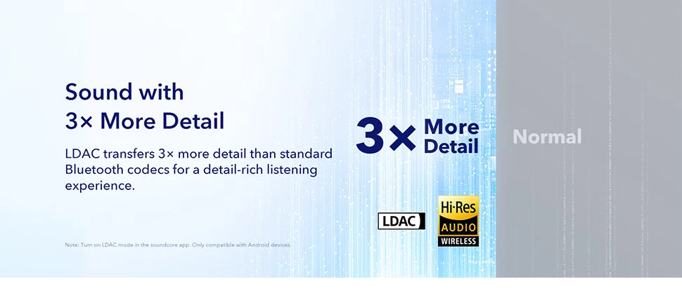 LDAC transfers 3× more detail than standard Bluetooth codecs for a detail-rich listening experience.