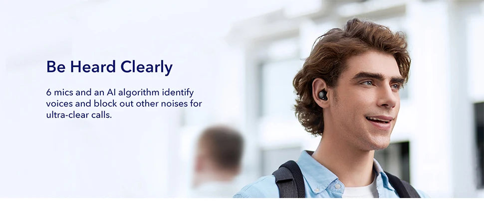 6 mics and an AI algorithm identify voices and block out other noises for ultra-clear calls.