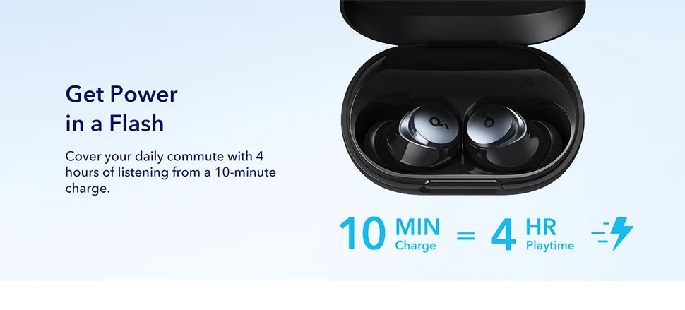 Cover your daily commute with 4 hours of listening from an ultra-short 10-minute charge.