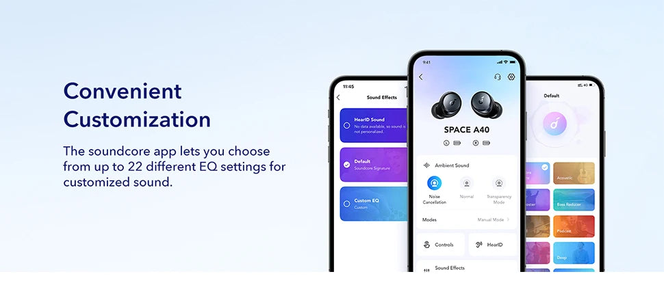 Use the soundcore app to tailor Space A40's sound to your preferences. Choose from 22 EQ presets,