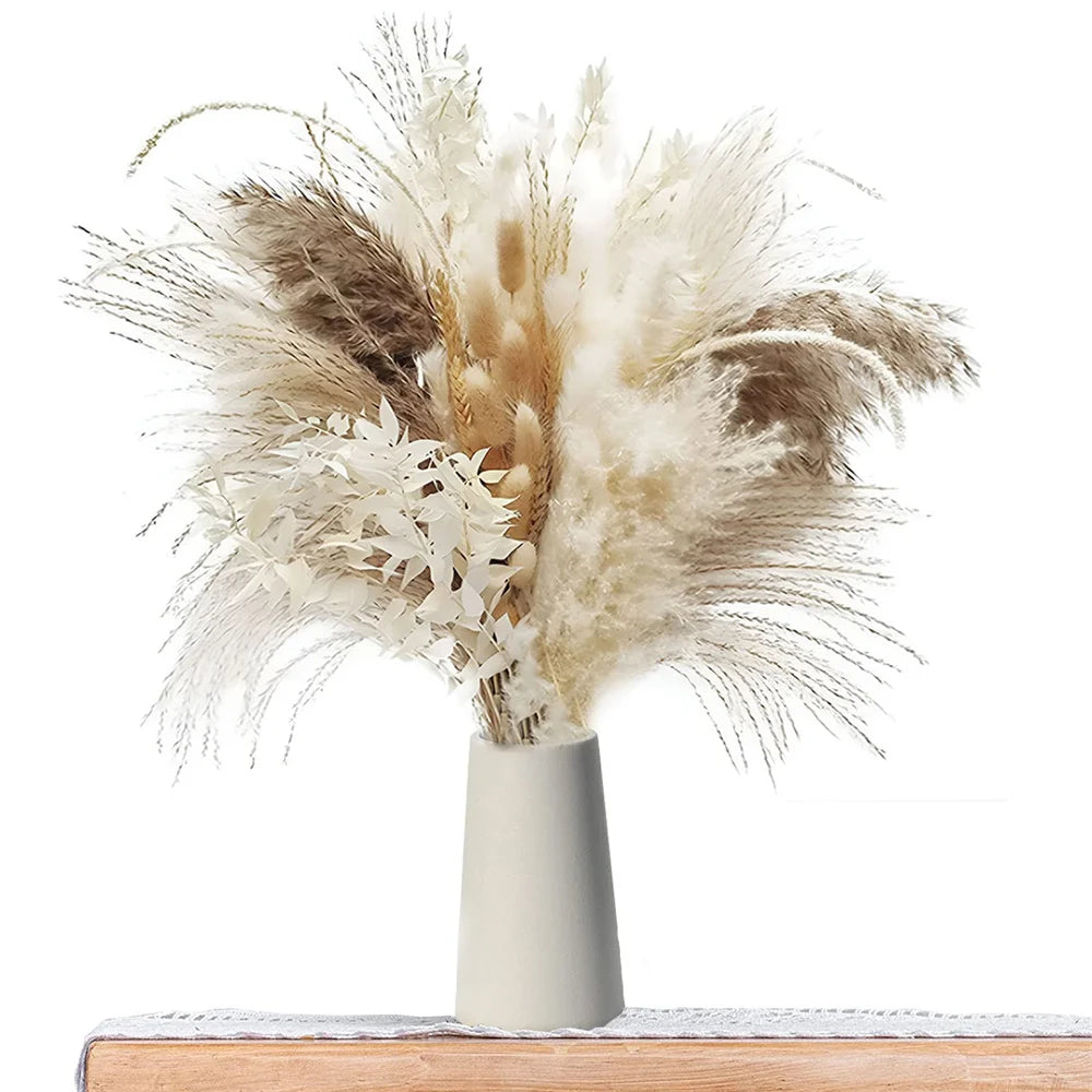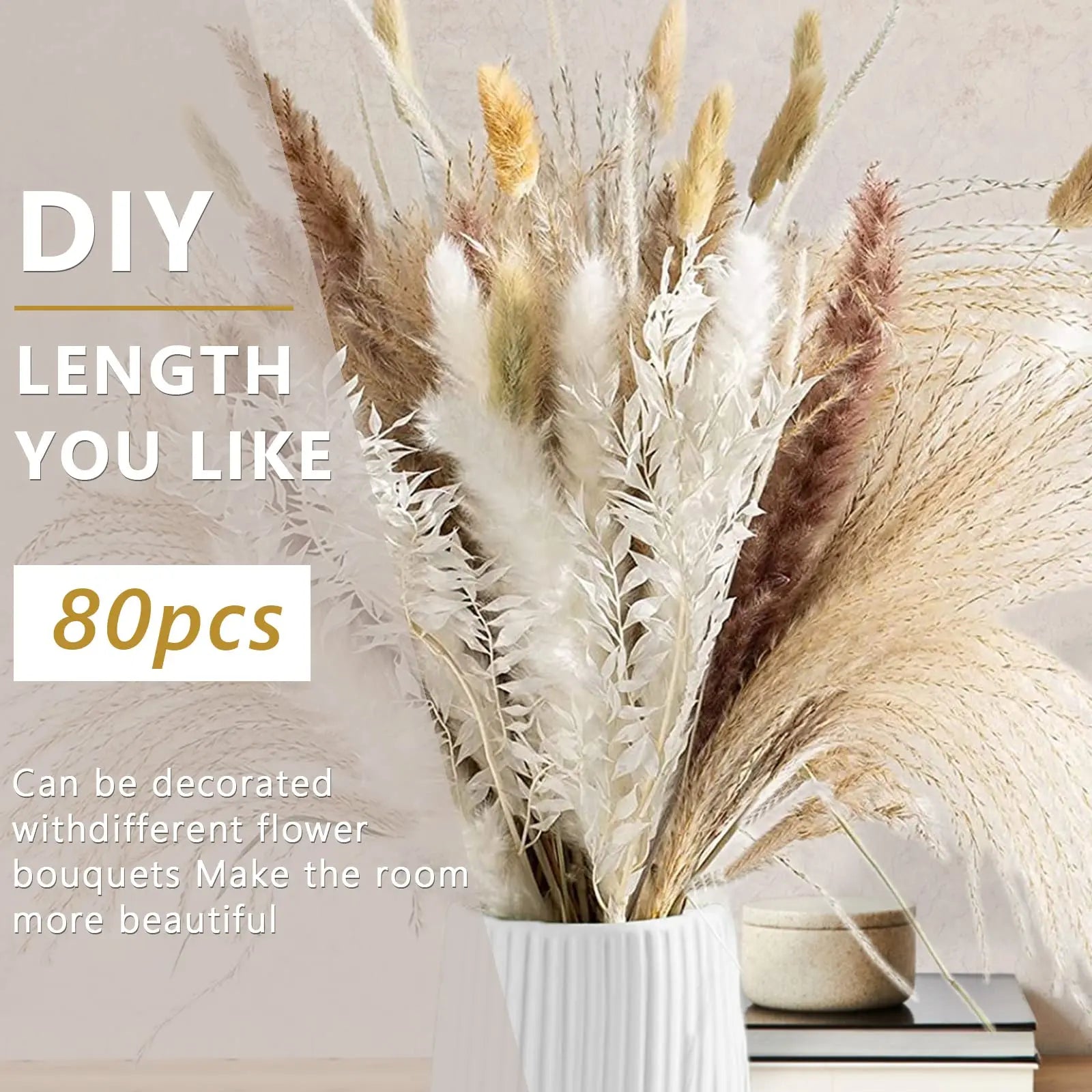 80pcs Modern Pampas Grass Dried Bouquet Boho Home Decor,Natural Fluffy Pompas Flowers for Wedding Bedroom Floral Arrangements