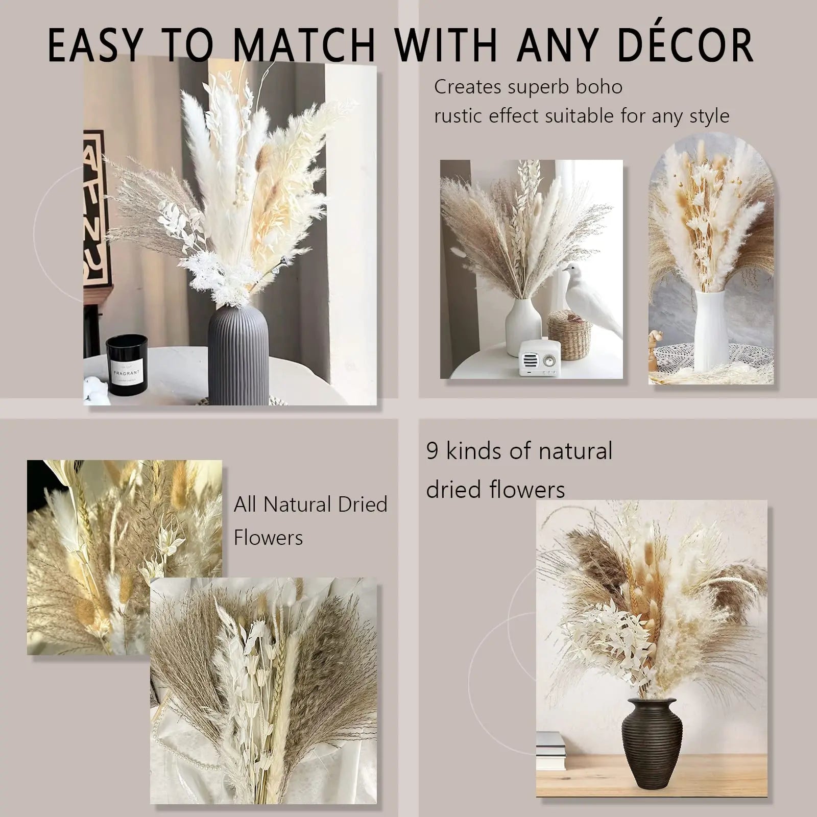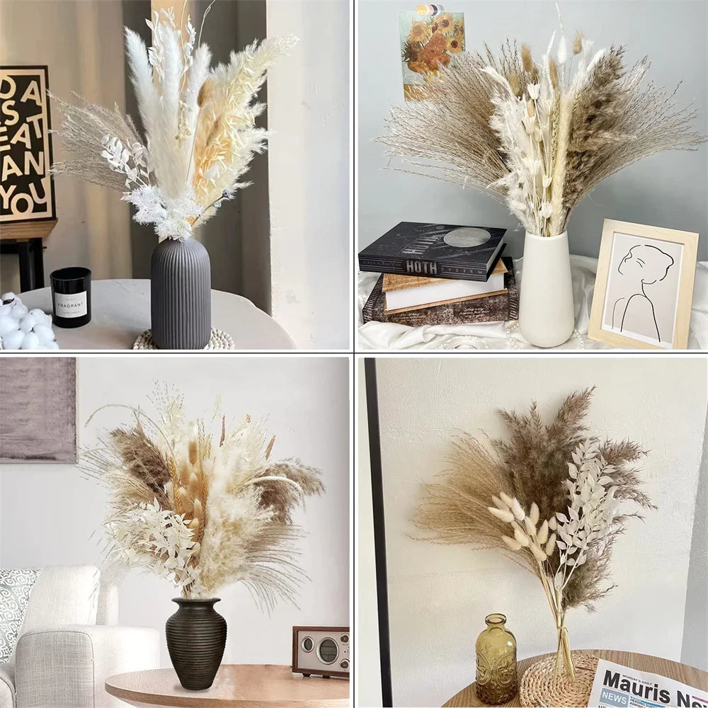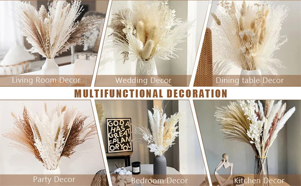 【Perfect For Any Occasion】: The dried flowers bouquet suits any style of vase for bohemian decoration wedding party, bedroom decoration, home decoration, farmhouse decoration and autumn decoration, you can use dried pampas flower bouquet to decorate bedroom, living room, dining room, Add glamour to parties, hotels, gardens, cafes and DIY.
