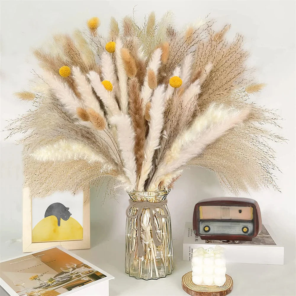 Modern Grass Dried Natural Fluffy Pompas Flowers - 80Pcs