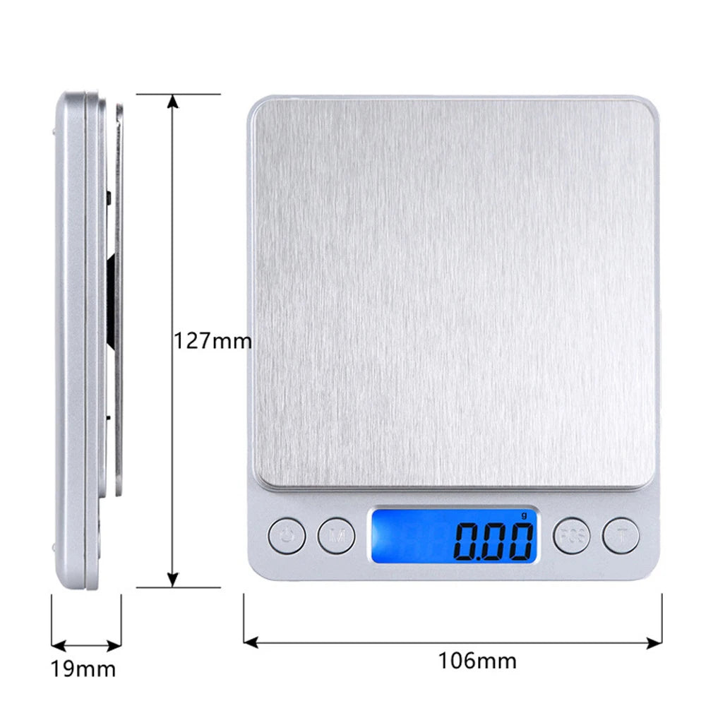 Electronic Weight Scales - Jewelry & Food Balance - Silver With 2 Tray