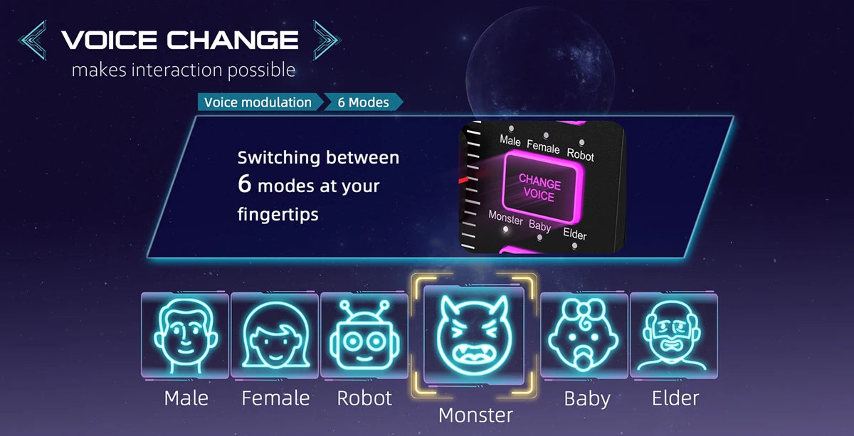 Unleash your creativity with 6 voice-changing effects that let you change your voice from robotic to childlike with a single click. You can also customise the recording settings such as laughing and clapping to enhance the interactive atmosphere.