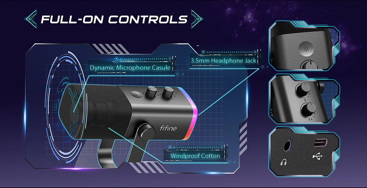 Now throw the light on a couple of more practical features. The perfect combo of a mic gain control and a live monitoring headphone jack is here to secure your gaming communication with consistent loudness. Wanna do it mute fast and precisely? A touch-sensitive button makes the whole thing a lot easier.