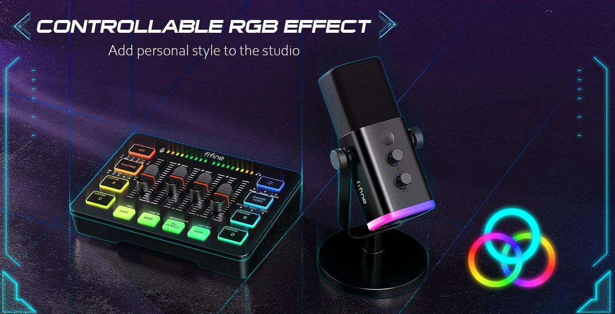 FIFINE All-in-One Podcast Kit with RGB Audio Mixer