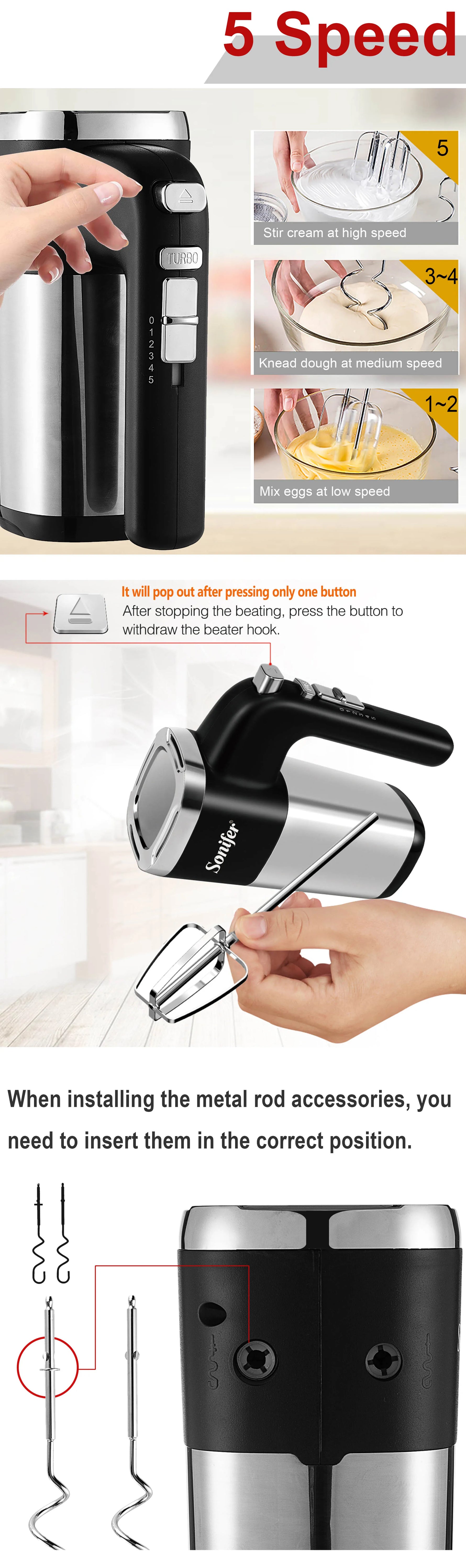 Feature: Beater Ejector Button,Tilt-Head Design,Easy beaters removal and clean