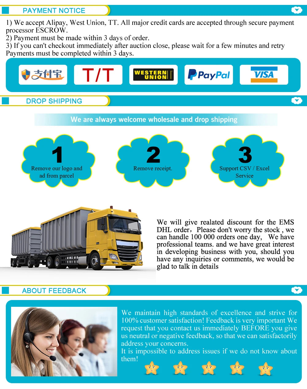 Multiple payment options for your convenience.