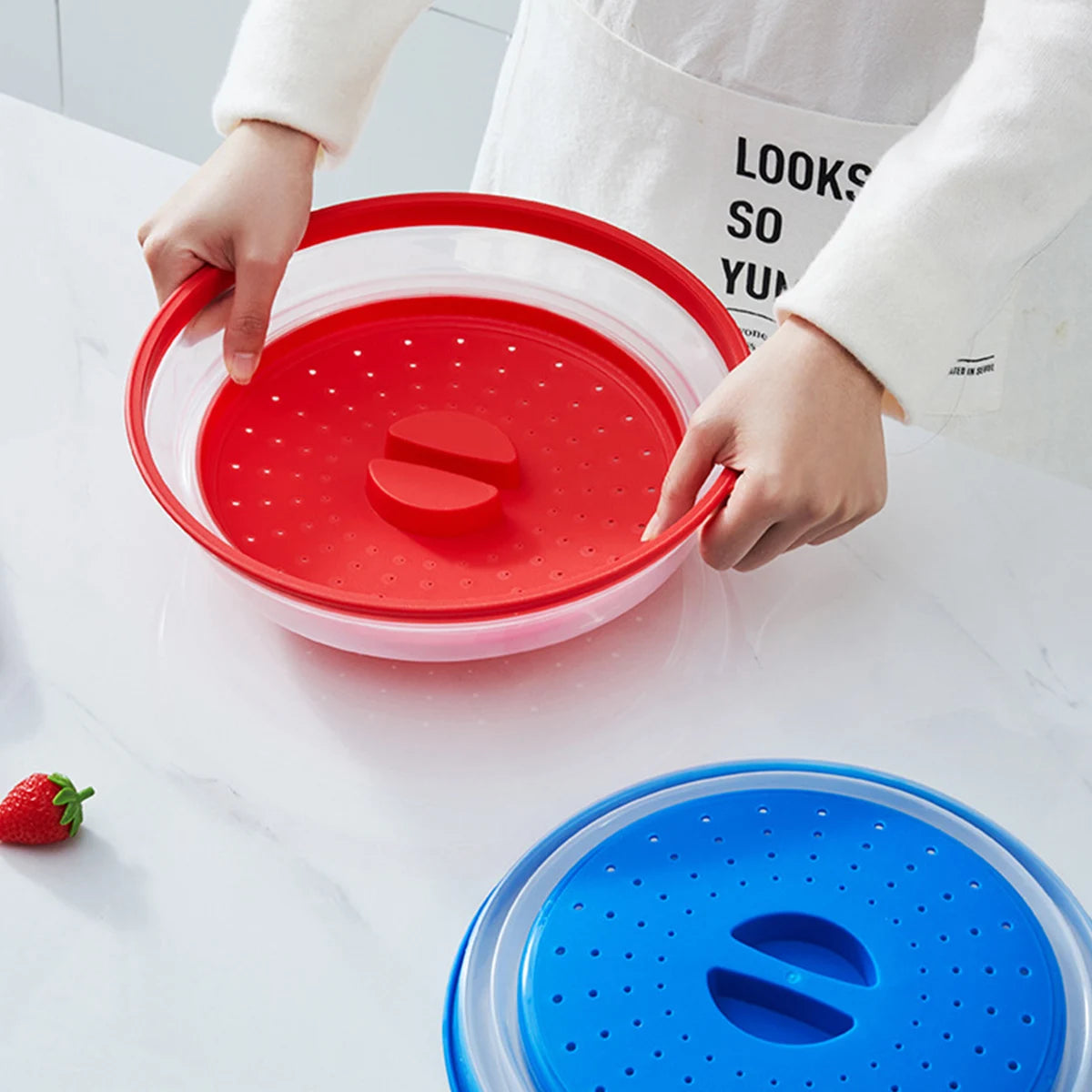 2.The folding microwave cover has many steam ports and can also be used as a draining basket for washing fruits and vegetables, multi-purpose.