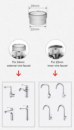 The adapter connector male threads: 24mm, faucet diverter female internal threads: 22mm, fits for Round faucets of M24 internal thread or M22 external thread.